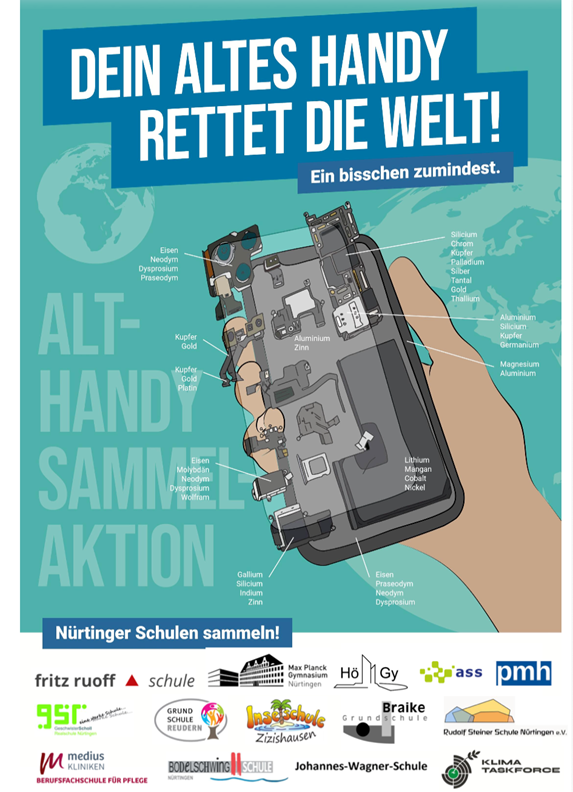 Im Mai-Juli 2023 fand eine Sammelaktion von ausrangierten, alten Handys in 14 Schulen in Nürtingen statt.