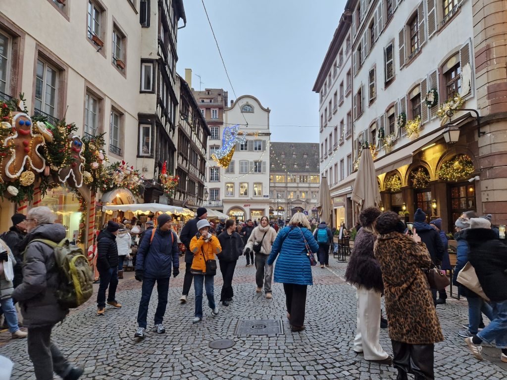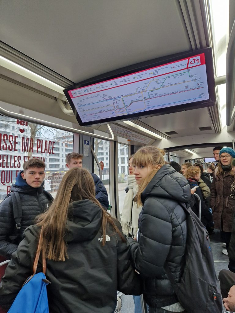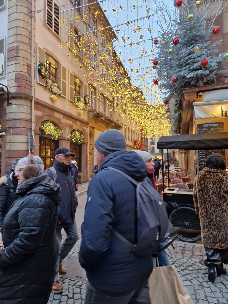 Mit der Tram ging es im Anschluss in die Innenstadt. Hier winkte das Kontrastprogramm: Schlendern und Bummeln auf dem Weihnachtsmarkt. In kleinen Gruppen machten sich die Schülerinnen und Schüler auf, das vorweihnachtliche Treiben in buntgeschmückten Gassen, rund um das Straßburger Münster zu bewundern und sich mit elsässischen Leckereien und letzten Weihnachtsgeschenken an den Ständen oder in den Läden einzudecken.